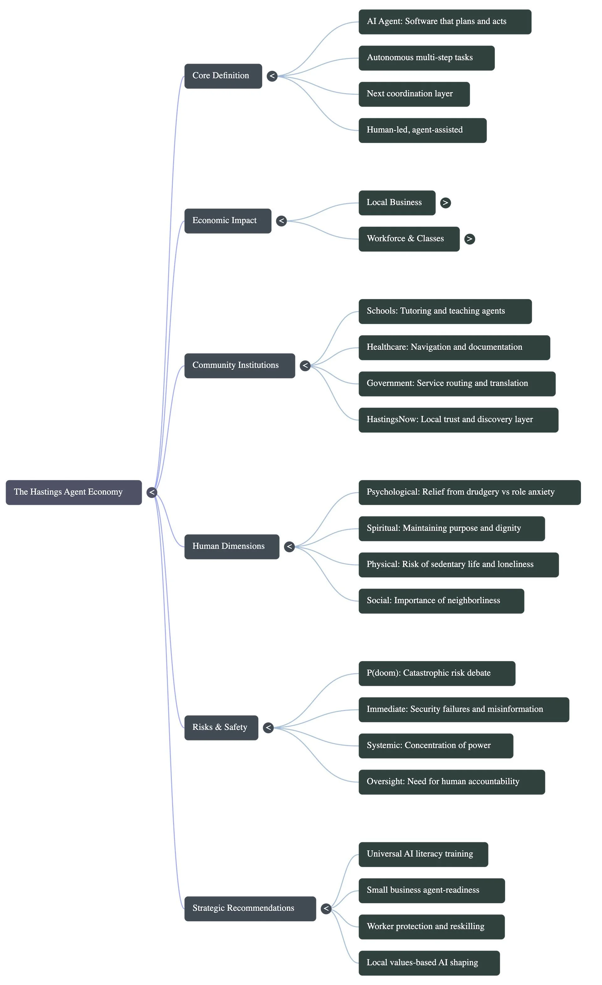 For Hastings, the future does not have to be dystopian and it does not have to be naive. A good Hastings Agent Economy would be human-led, agent-assisted, locally trusted, widely shared, and spiritually thick rather than hollow. It would use AI to reduce drudgery without reducing dignity. It would help local businesses compete without sacrificing neighborly life. It would make residents more capable, not more dependent. And it would remember that the purpose of an economy is not maximum automation. The purpose of an economy is helping human beings live well together.