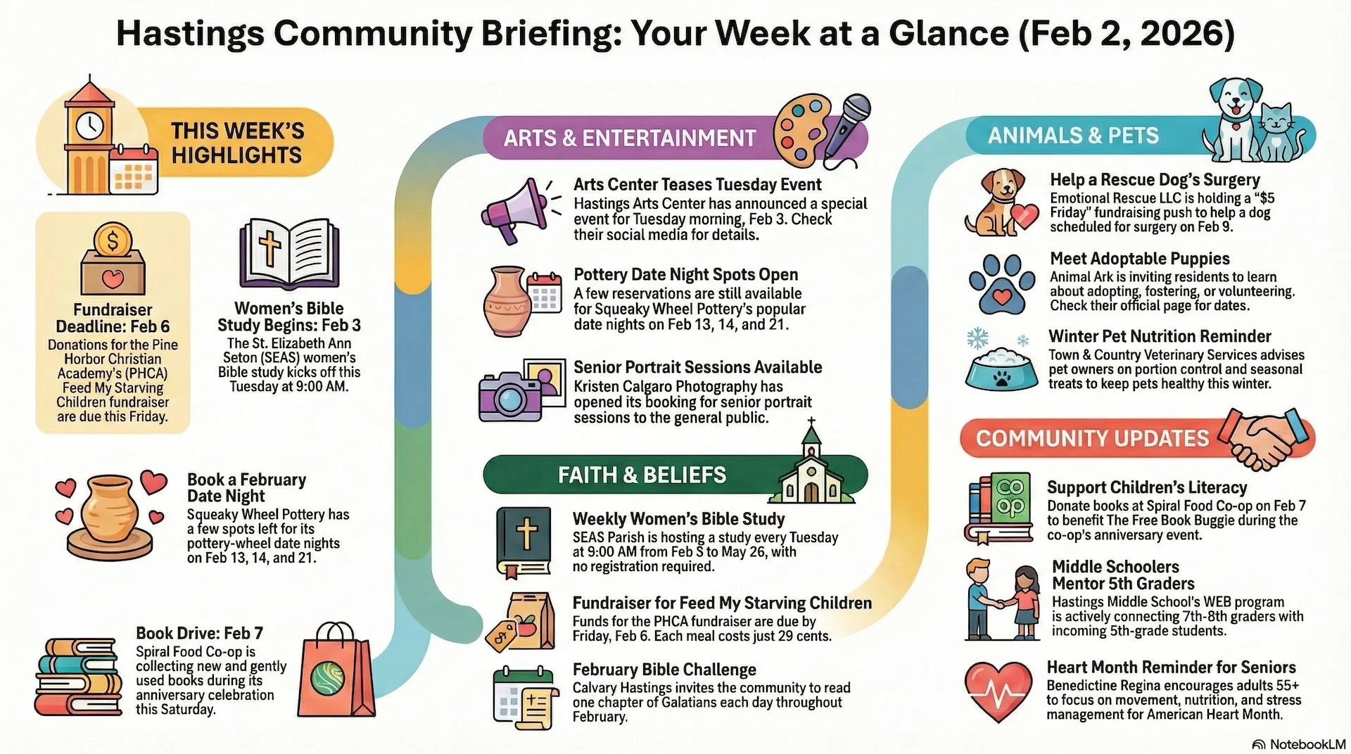 Highlights: Hastings Arts Center previews something happening Tuesday morning, Feb 3 (start time and details not listed—check official post).