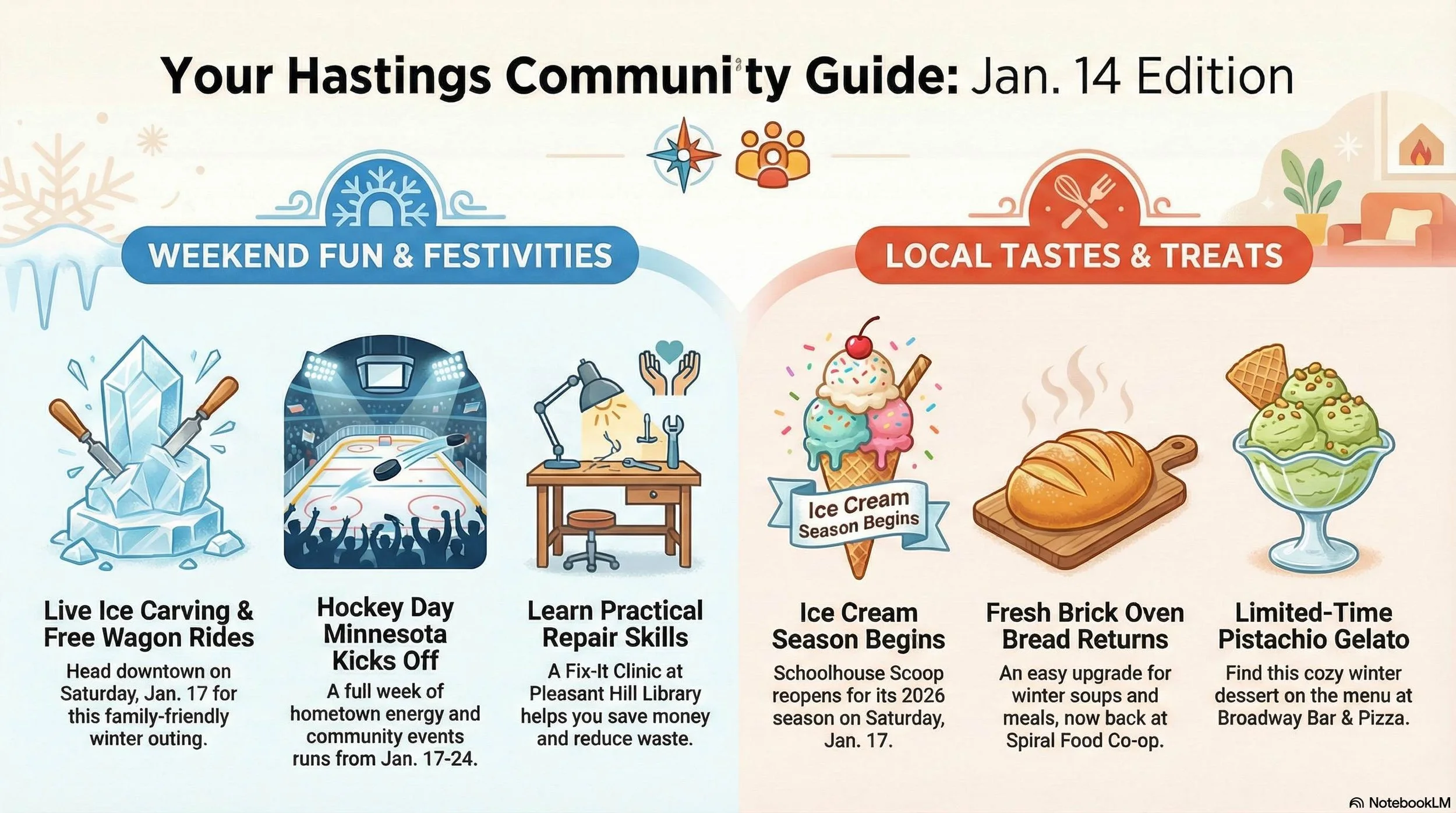 # Hastings Wednesday Briefing (Jan 14): Hockey Day Countdown, Ice Art Saturday, Fix‑It Skills, and Cozy Food Finds