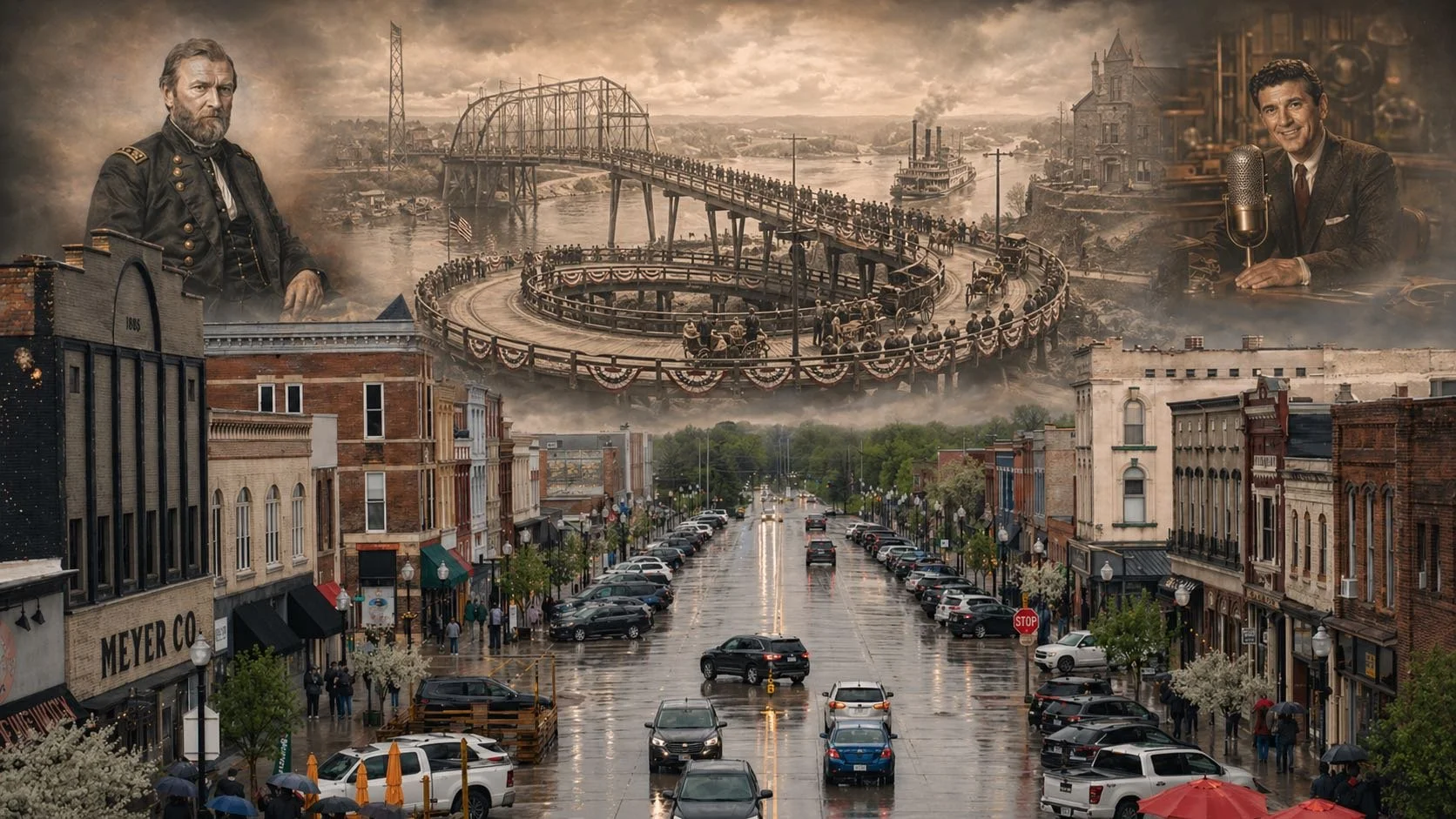 1895 — Hastings commemorated the opening of the new “High Wagon Bridge” across the Mississippi River. A historical marker says about 8,000 people marked the April 27 occasion; the bridge later became famous as the Hastings Spiral Bridge, built to bring traffic right toward downtown near Sibley Street.
