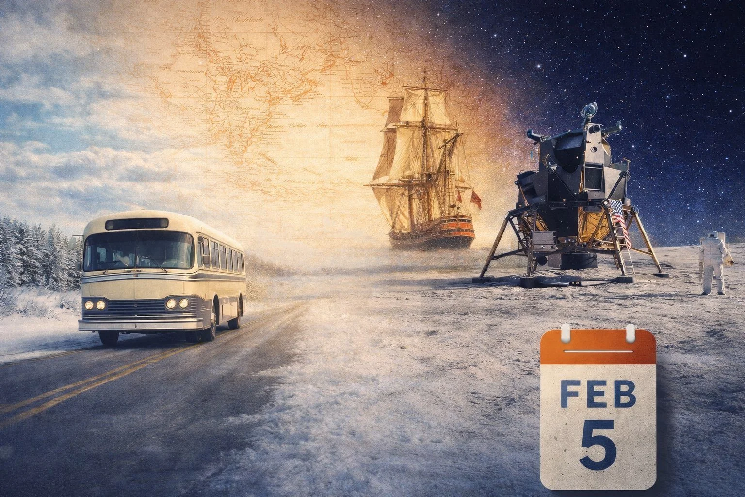 https://www.loc.gov/item/today-in-history/february-05/1971 — Apollo 14 touches down on the Moon: On February 5, 1971, Apollo 14 astronauts Alan Shepard and Edgar Mitchell landed in the Fra Mauro highlands. They explored, ran experiments, and brought samples back to Earth—an all-time “field trip” that still fuels science today.