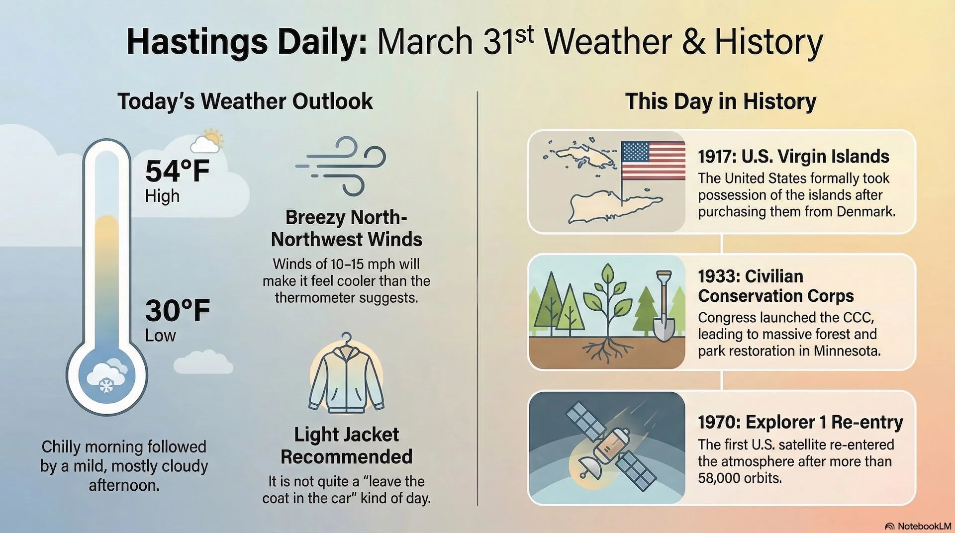 Tuesday is giving Hastings a very late-March kind of mood: chilly enough at sunrise to make the riverfront feel extra crisp, but mild enough this afternoon that a downtown coffee run or a Levee Park walk still sounds pretty good. Early Tuesday, the nearby National Weather Service observation showed partly cloudy skies and 37°F, with a wind chill near 30°F.